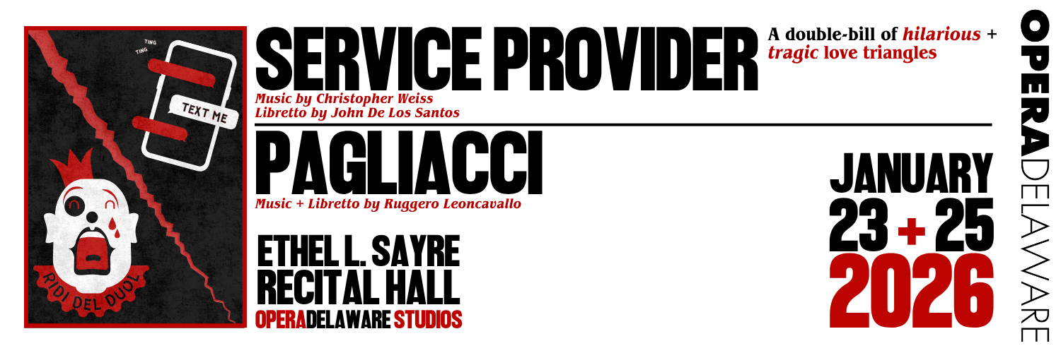Join us for a night of chaotic love triangles at the OperaDelaware Studios for Service Provider and Paglicci this January!